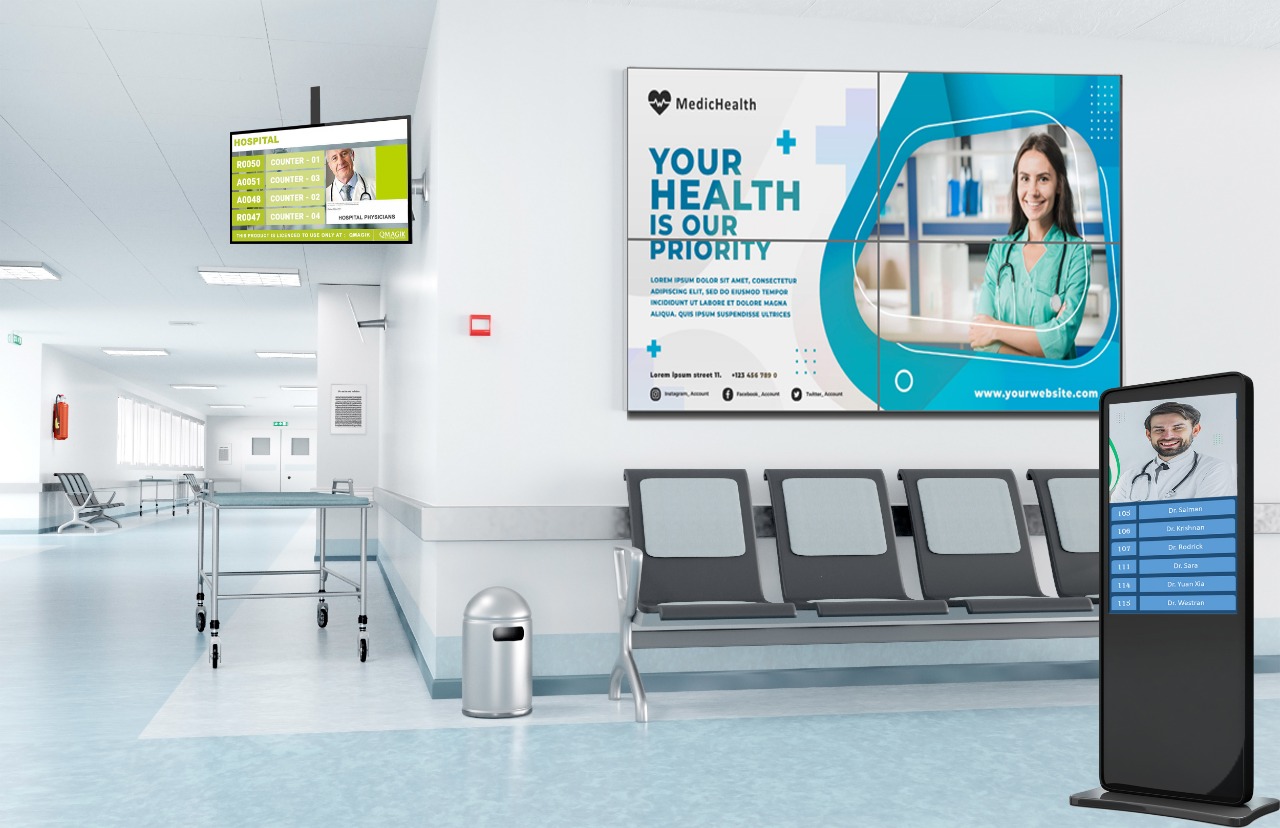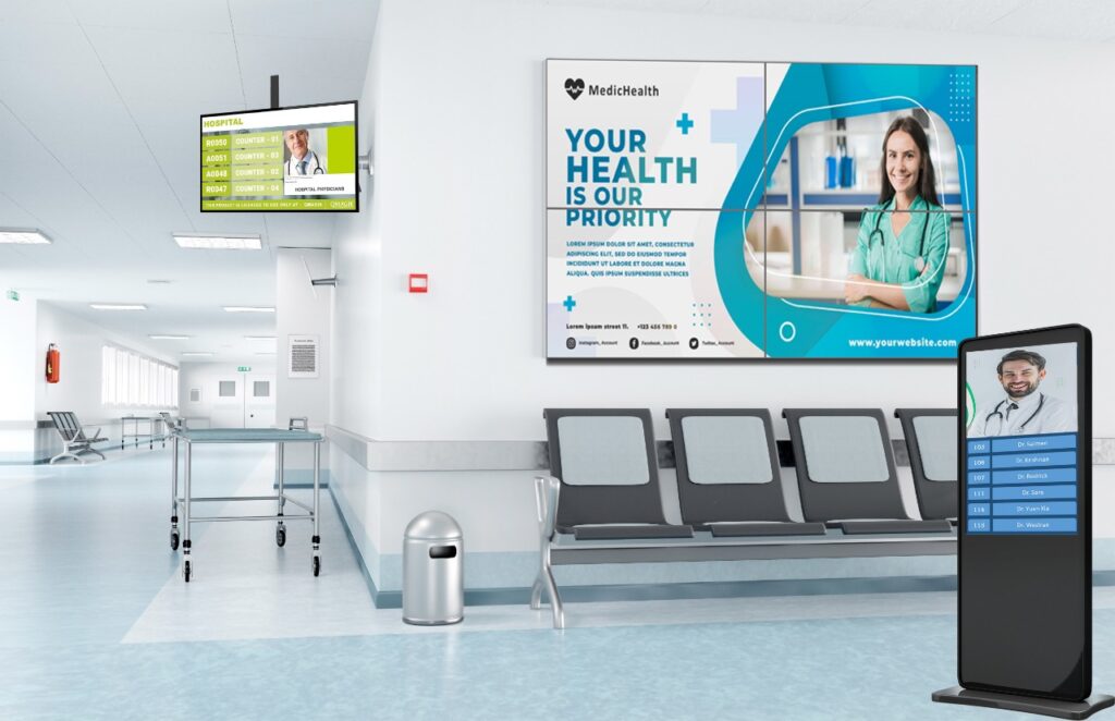 Utilizing digital signage in the healthcare sector plays a pivotal role in enhancing the experiences of patients, visitors, and staff. Whether employing digital screens to minimize perceived wait times in waiting areas or utilizing interactive kiosks for navigation within expansive hospitals, the strategic use of digital signage significantly elevates the overall satisfaction of visitors and patients.